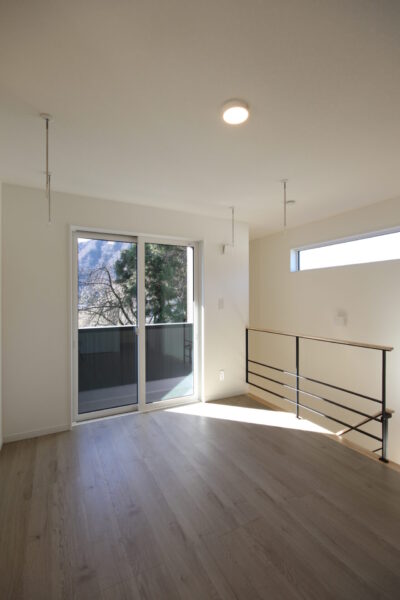 リビングを囲ったL字型の土間テラスから望む景色は広大な山々が広がり、自然の美しさが広がります。