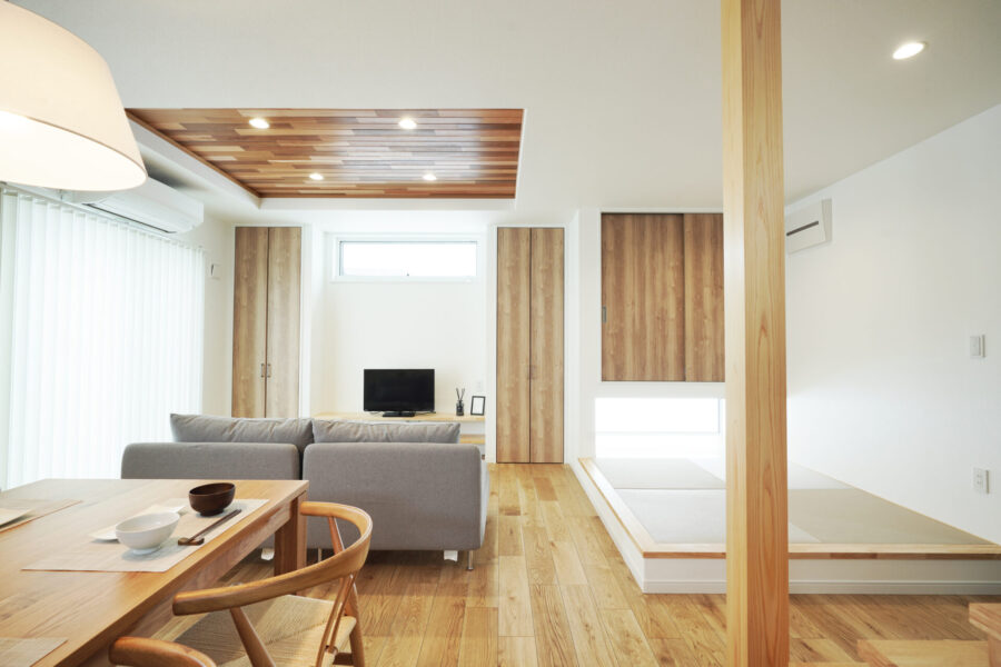 リビングには子どもも一緒に家族でゆったり過ごせる畳スペース。